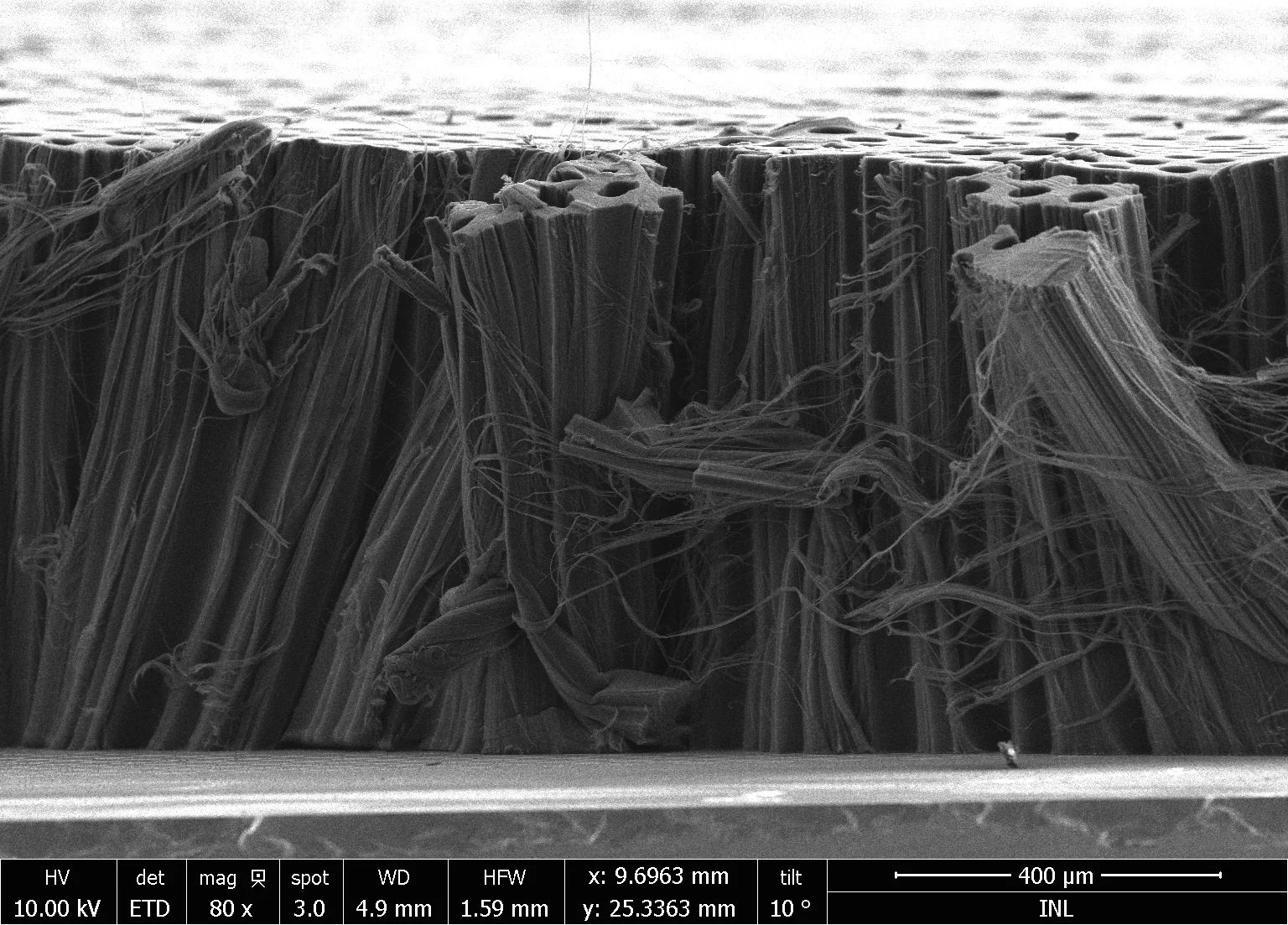 This micrograph was taken at the INL - International Iberian Nanotechnology Laboratory Micro and Nano Fabrication facility using a FEI NovaNanoSEM 650. This research has received funding from the European Union’s Horizon Europe research and innovation programme under the Marie Skłodowska-Curie grant agreement No. 101062008.